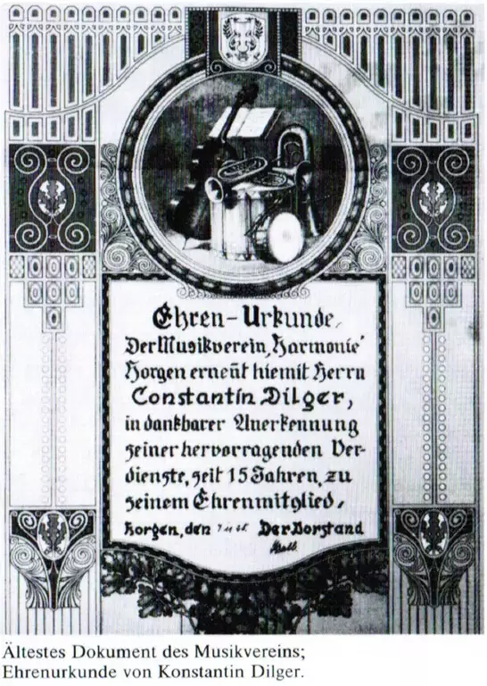 1937 dachte niemand in Horgen an ein Jubiläum zum 25-jährigen bestehen, denn die Horgener Musikkapelle war erst seit dem Vorjahr wieder aktiv. Bei der volkszählung im Jahre 1933 zählte Horgen stolze 489 Einwohner. "Es sind gesunde, kräftige, fleißige Menschen, die schon seit der frühesten Jugend harte Arbeit gewöhnt sind." So beschreibt die Chronik des 3. Reiches die Situation. Seit dem letzten Jahr (1936) hat die Kapelle einen neuen Dirigenten (nach Christian Schlenker, Hans Weiß und Albert Müller), der die Geschichte des Vereins entscheidend prägte: Karl Bucher aus Rottweil.